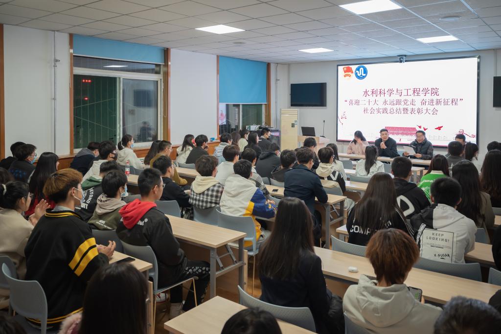 10月12日,beat365在线唯一官网“喜迎党的二十大 永远跟党走 奋进新征程”社会实践总结表彰大会在水利馆三层会议室举行。院党委副书记王飞,团委书记兼学工办主任田韶华、我院赴右玉县实践队指导老师王泽宇,赴五寨县实践队指导老师薛未以及实践队员代表70余人参加大会,大会由田韶华主持。