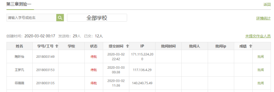 图5 “统计”功能中批改章节测验